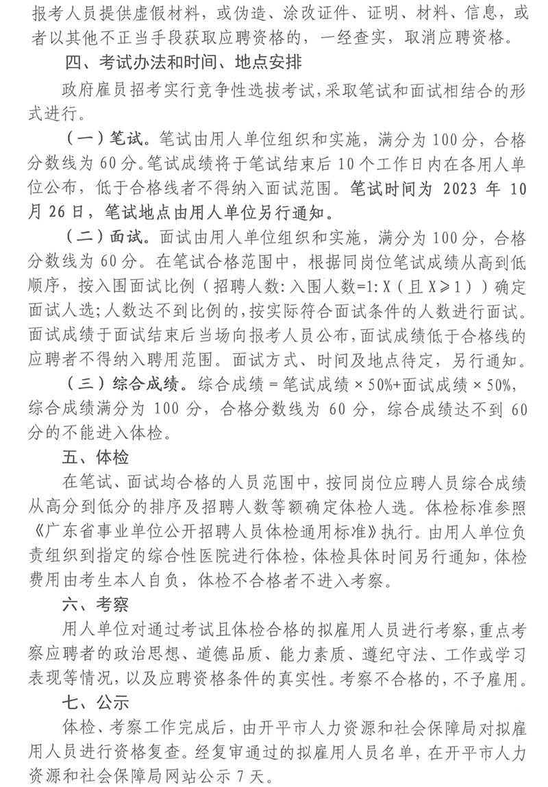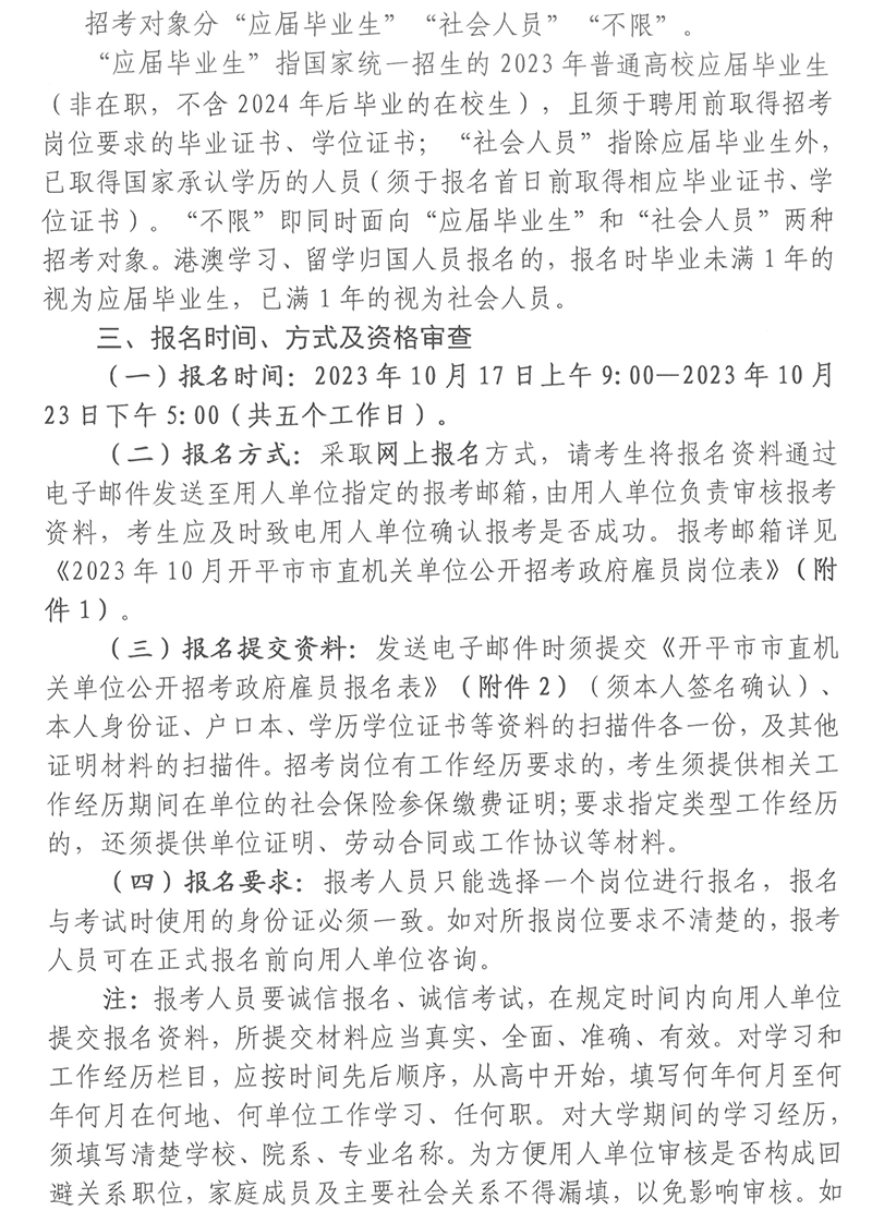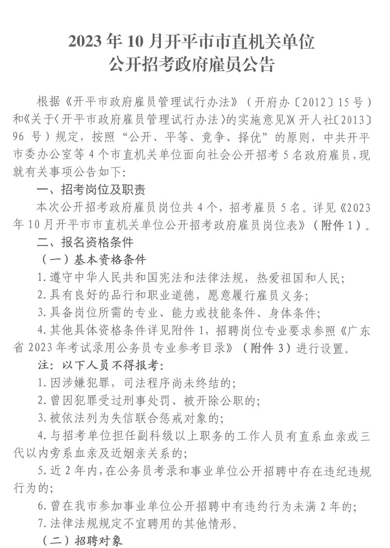 2023年10月開平市市直機關(guān)單位公開招考政府雇員公告